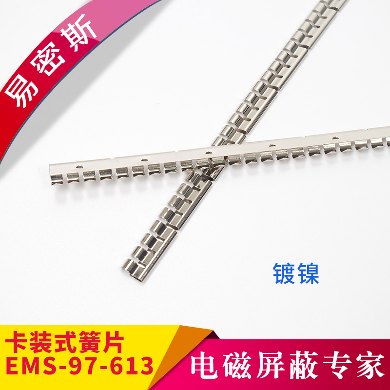 易密斯™鈹銅簧片由具有電磁兼容屏蔽效果的進(jìn)口鈹銅合金C17200制成,具有優(yōu)秀的抗壓性、回彈性和耐腐蝕性,并提供很好的寬頻電磁屏蔽效果,特別適用于通訊機(jī)柜、電腦、屏蔽室/門、面板及插拔件的間隙填充。易密斯™鈹銅簧片現(xiàn)有60余款標(biāo)準(zhǔn)件可供選擇,同時(shí)可支持定制。